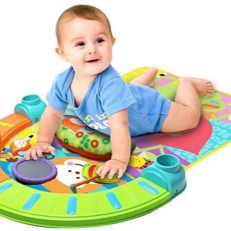 - Developmental rugs. This is a great gift for both the baby and parents, as it gives you the opportunity to put the crumbs for a while and do something during this period, for example, drink coffee or wash the dishes. When choosing a rug, focus on the quality of materials and the number of toys that can entice him.