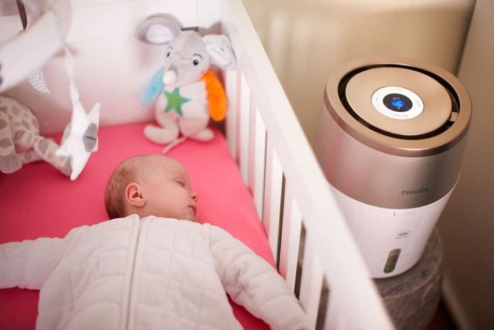 - Humidifier. This is a small device where water is poured, then sprayed and moisturizing air to the desired level. Almost all modern humidifiers have a hygrometer, which determines whether there is sufficient humidity in the room, whether to start the device in working condition. Humidifiers work quietly, so the child’s sleep will not be disturbed.