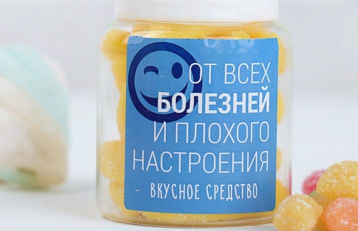For example, jars filled with delicious chewing sweets or marshmallows with the words "From a bad mood", chocolate spoons, marmalade in the form of ice cream or worms. Children will be delighted with such a delicious gift.