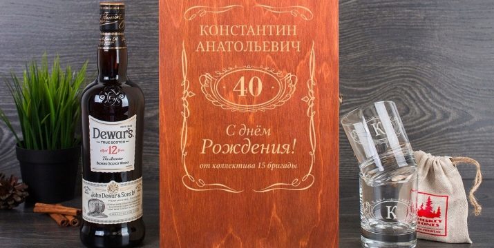 - Named bottle of whiskey. Alcohol is a classic gift for a man. A bottle of good whiskey, brandy or vodka need not be drunk in the first few hours: especially named bottles of alcohol are carefully stored. The appearance of limited bottles is almost the same as usual, the only significant difference is the presence of a name on the label.