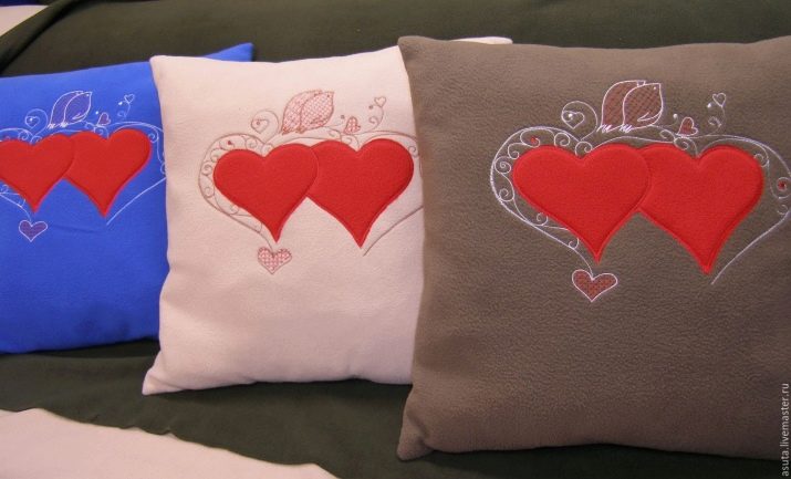 - Decorated pillow. A similar thing can be sewn from a variety of materials, for example, it can be: fleece, cotton, knitwear and other fabrics. To make the present more interesting, think up a lyrical plot in advance and realize it in the best possible way. You can make an application in the shape of hearts or portray the images of lovers. In general, show your creative abilities.