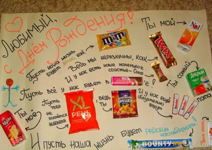 - Comic wall newspaper. If your husband has a sense of humor, then he will definitely appreciate this venture. The wall newspaper will not only help replace a banal card, but also a million bored congratulatory words and wishes. If you have at least minimal artistic skills, then you can do it yourself without any help and in a short time. If drawing is not your forte, then you can simply print your favorite pictures on a printer.