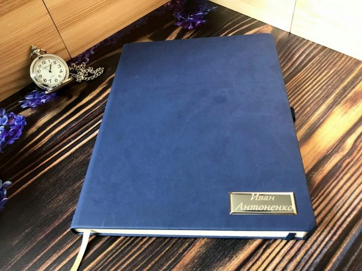- Personal notebook. If your husband works in the office, then such a gift will appeal to him. Name engraving will help to add uniqueness to this modest present.