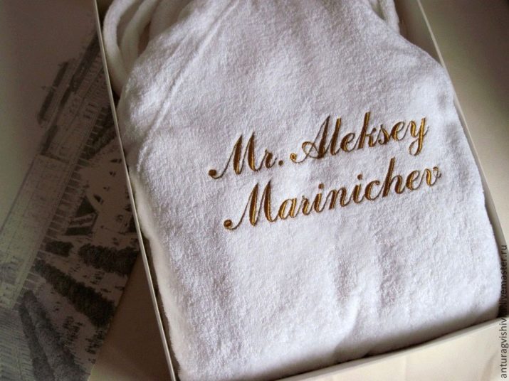 - Bathrobe with exclusive embroidery. Here you can give vent to your imagination and place absolutely any inscription. On the one hand, this is a rather practical gift - a bathrobe is never superfluous, on the other - an original one, because the hero of the day will understand that you were informally choosing a presentation.