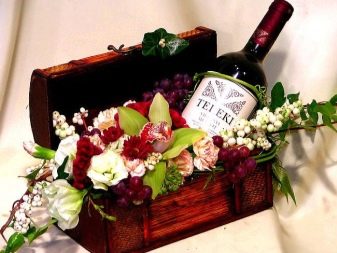 For a loved one, you can also collect a bouquet of flowers. According to statistics, men love such gifts no less than women. They only need to be issued accordingly. Bouquets for men make up either of white flowers or of dark - blue, dark red, purple. Such a bouquet is best placed in a basket in a company with a greeting card and a bottle of expensive alcohol.