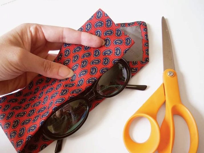 - Case for glasses. It can be made from improvised means, for example, from an unnecessary dad's tie. To do this, you will need scissors to cut off the excess, and a thread with a needle. With such a creative accessory, your young man will be able to feel older, and he will definitely appreciate the originality of the idea.