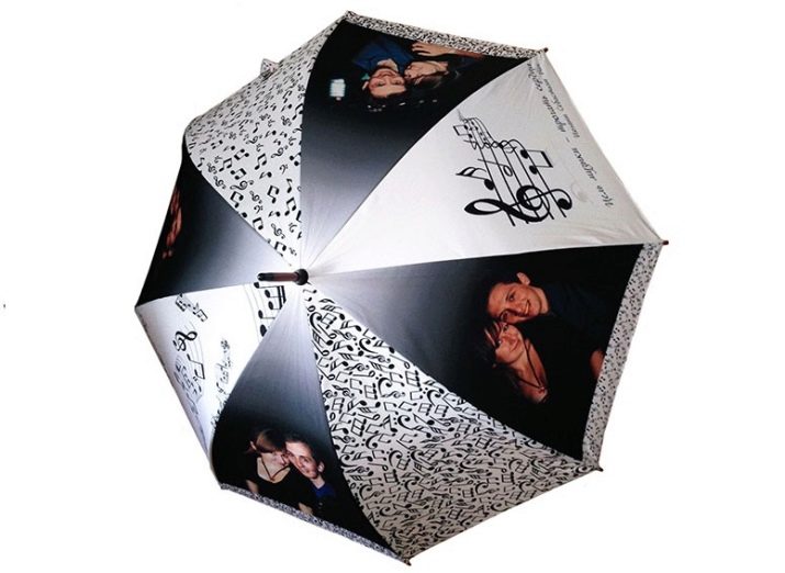 - No less interesting will be a donated umbrella, the dome of which is decorated with your joint photos. Nobody will definitely have such an accessory. The girl will be delighted with this exclusive and useful present.