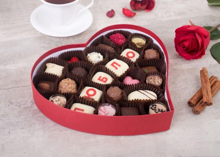 - A sweet and touching present will be a set of chocolate confessions of feeling. It is advisable to present this gift as a plus to the main gift.