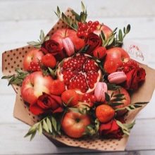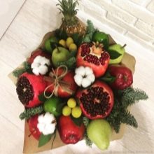 The composition can be created from any exotic or traditional fruit. Such a gift will definitely not disappear. Fruits are freshness, lightness, femininity, vitamins, which are especially needed in the spring. By the way, this is a very affordable gift. Often it is customary to give “presents” not only to teachers, but also to the nanny, music worker, and other employees working with the group, and if you give each of them a fruit bouquet, then the teachers will be satisfied and the parents will fully pull such a gift financially.