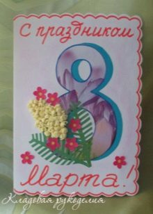 Glue an even piece of white paper below and carefully write “From March 8” on it. To make the gift look more neat, this inscription can be printed on the printer using a beautiful font.