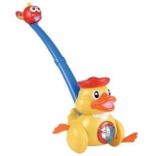 - Among the toys, the choice is huge: From designers for babies with large parts to wheeler ducks (children are very interested in wheelchairs a year old), you can buy a simple musical toy in which there are several buttons and sounds understandable to the child, for example, you press a sheep, it bleats, you press a kitten and meows . There are not only such toys, but also interactive music rugs that do the same thing, but they can be rolled out on the floor, crawled freely and sit on them, and rolled up and removed if not needed.