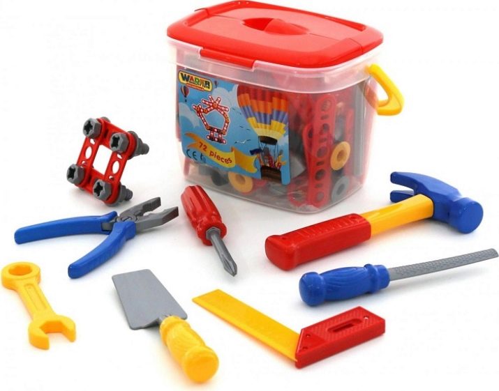 - Set of "male tools" - all the boys are interested in hammering plastic pegs into the holes, hammering on the panel with a hammer and imitate again, but this time to dad. Special tools for the smallest representatives of the stronger sex help to develop fine motor skills, as well as meet the needs of a year in experiments.