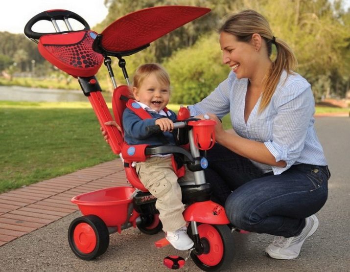 A summer alternative is tricycle with holder for mom. When the baby adapts to operate the pedals independently, the handle can be removed. This gift is not only convenient and practical, but also useful: a child trains leg muscles, learns to go around objects. But there are also disadvantages in this present: it is heavy and does not allow the baby to sleep during a walk.
