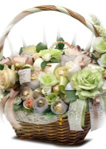 You can put in a basket various delicacies that the hero of the day likes. This can be elite varieties of cheese, sausages, caviar, olives and more. It all depends on the taste preferences of the birthday man and on your financial capabilities.