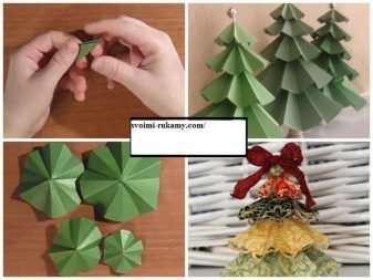 The simplest and most original home-made products are made from paper accordions. Both a child and an adult can add such. A colorful Christmas tree made of several layers of paper is a prime example. Each accordion in it is simply neatly folded, and then glued insecure. If you want to decorate your green fir-tree from accordions even more, carefully treat it with hairspray, and until the last has dried up, sprinkle the design with confetti and sparkles. So you add to her a festive mood and elegance that will delight your loved ones.