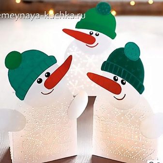 You don’t have to worry about fire safety violations, because the flame in such candlesticks will be exclusively made of paper, not the real one. Such candlesticks can be displayed in open form, like a postcard, on a regular table for work or on a souvenir shelf. Cute candle holders depicting snowmen are suitable for both adults and children. So how to make such gifts?