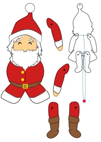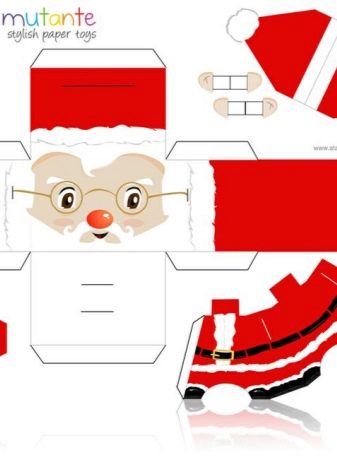 But this is only half the work, because now a bow is still needed. We cut out all the necessary elements from paper, preferably red (after all, we make Santa Claus), imitating an ordinary bow from ribbons.