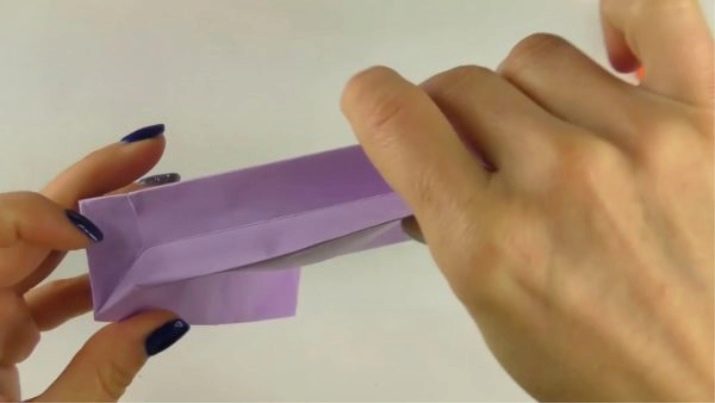 We fold the first paper sheet in half, but leave a small gap, we also bend it and only after that we apply glue, connecting the ends of the paper. But this is only the beginning, we still need to form the bottom, so now we select one of the perpendicular sides and bend again by 4-6 centimeters, spreading on the sides to make triangles. We take both petals to the center, let go, go through the glue - the bottom is ready. It remains only to carefully bend along the glued edges along the ruler, then straighten the resulting shape.The result was an ordinary paper bag.