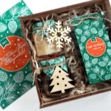 And in order not to give the same thing every year, you can choose something more original. For example, you can order sweet gifts with the company logo and with a congratulatory inscription. It can be gingerbread, holiday muffins, sweets or chocolate bar. You can choose sets of classic chocolates, or you can give preference to sweets with alcohol. In addition, a bottle of champagne can be handed over to employees as an addition.