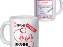 - Cup. You might think that this is a banal gift, but if you order a mug with a pattern that appears when hot water or drinks are poured, this gift will be unusual. Moreover, to order you can choose drawings, inscriptions or photographs for every taste. You can insert a photo of the doctor, his favorite phrase or describe his merits.