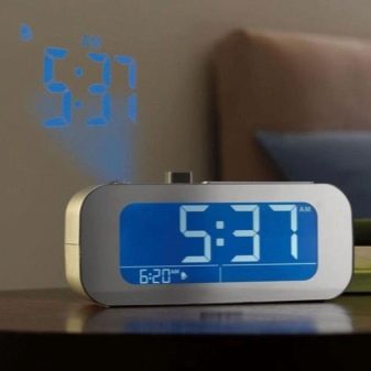 Something similar to the previous idea is a variant of the clock with a projector that displays luminous time digits on the display, and even projects them on the ceiling or wall, which is clearly visible from a prone position. This is very convenient if a person often wakes up in the middle of the night and wants to know how much more time you can sleep. As a rule, such designs also require a built-in alarm clock. There is no need to talk about the cost of this and the previous options - the prices for such equipment can radically differ depending on the functionality and even the country of production.