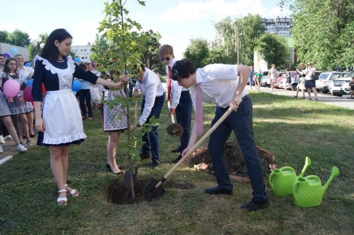 In schools, as a rule, long-term traditions take shape, following which each graduation leaves its mark in the history of the institution. It can be landscaping near the school: planting deciduous and fruit trees, equipment for the playground. An interesting and beautiful tradition is the design of a school art gallery or greenhouse.