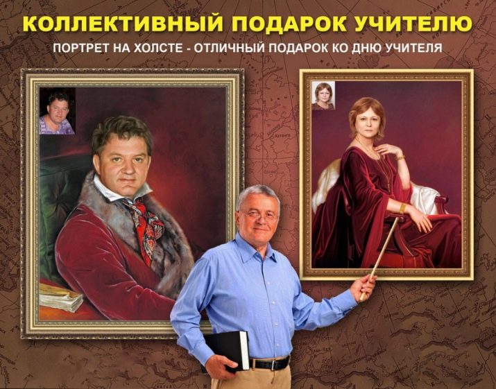 Portrait of a teacher in his photograph. Such a gift will be a true recognition, a sign of respect and gratitude. Valid portraits in any technique - graphics, watercolors, paintings. Today, such a service as the transformation of a person in a portrait depending on his profile of activity is also in great demand. For example, you can order a portrait in which a class teacher teaching history appears in the image of a Roman commander or Queen of Egypt, and a class teacher teaching literature in the image of a poet of the Middle Ages. You can simply make the king, princess, fairy or wizard out of the class teacher. The possibilities are endless.