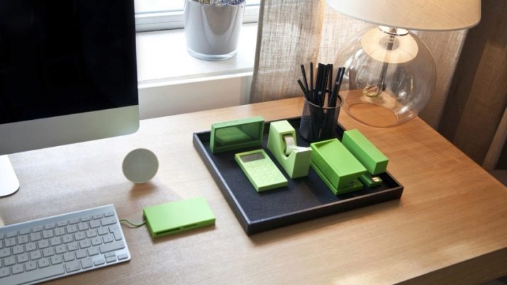 Compact stationery set - it is better to choose a desktop option, which includes pencils, pens, paper clips, a stapler, a stand for all this.