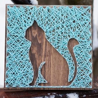 With your own hands you can do pretty attractive and functional things for the home. Grandmother will like a beautiful needle bed, flower pot or handmade dishes. You can make an original body scrub or eau de toilette with essential oils. Homemade postcard will help to complement the gift. You can execute it not only from paper, but also from a sheet of wood, nails and threads in this way: