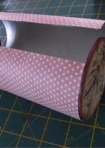 - Cut a cardboard square 15 by 15 cm. Roll up and glue the edges. Cut a circle of suitable size for the bottom.