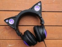 - headphones decorated with fur in the form of cat ears;