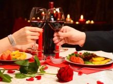 - A festive romantic dinner in a restaurant.