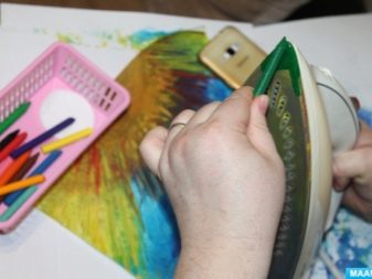 Not so popular material as the same watercolor, but providing much wider opportunities for creativity - these are wax crayons. The use of iron gives very interesting effects. This technique is called encaustic. It is quite simple, you only need to practice a little to get your hand in full. In addition, you will need to stock up with a towel (so that the iron goes softer), with thick paper and napkins - wipe the sole of the iron.