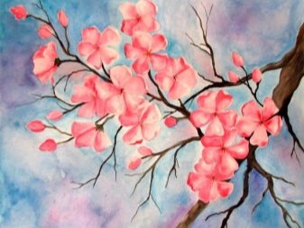 Using a simple pencil, you can create a 3D effect by accurately painting the shadows and adding volume to the image. When working with paints (watercolors or gouache), the first steps are the same as using a pencil. But you can simplify the work. For example, when depicting a branch of blossoming sakura, you can skip the creation of the sketch and immediately proceed to the color embodiment of the work. To do this, curved lines are depicted with black or dark brown paint, connected to each other - this is directly a twig.