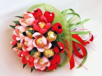 To date, as an unusual surprise, it is proposed to give your girlfriend a bouquet of sweets. Its main advantages are attractive shape and cost. To make a bouquet, you can contact the confectioner-florist or fold the jewelry from the girl’s favorite sweets into a single composition with your own hands.