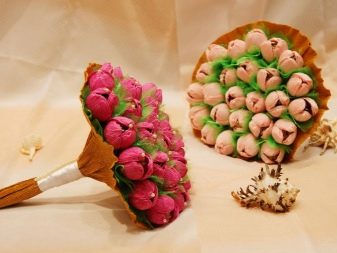 A good reputation is enjoyed by compositions from coffee and tea components. Such bouquets are sold in any supermarket. As additional elements there are sweet treats and butter biscuits. When compiling such a composition at home, only those products that the recipient of the presentation likes are used.
