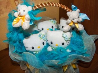 Along with sweet bouquets, they are very popular soft toy baskets. Of course, such a gift is given mainly to young girls, but if you want to congratulate your girlfriend on the first day of spring, you can make such an exclusive surprise.