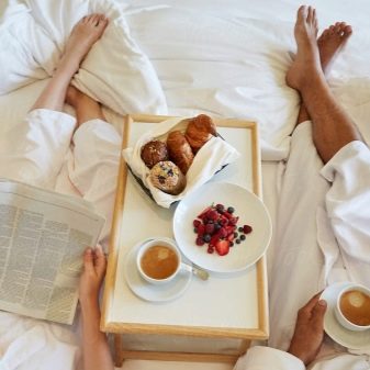 As a romantic gift, dinner in the restaurant is perfect. You can pre-pay all the dishes that both of them like, and this will be a big surprise for any couple. If lovers love to please and pamper each other with surprises such as breakfast in bed, you can present them with a special table and a pair of comfortable slippers as a presentation.