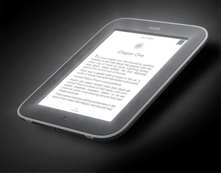 - e-book with backlight along the contour of the screen, implying touch or button control, the presence of a player, alarm clock and radio;