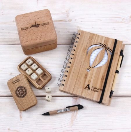 These may not necessarily be expensive gifts. Pencils and notebooks in a wooden cover with the logo of the company, fridge magnets, branded badges are excellent promotional gifts. The main thing is high-quality performance and good material for manufacturing. For employees who have children, you can make logo Christmas decorations in the form of horses, balls, Christmas trees, snowmen.