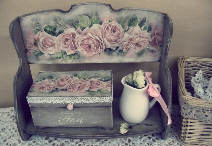 If you are attracted to decoupage, you can also work with wood in this technique. Either do it yourself or buy a blank of what you are going to process. The surface before work must be clean and sanded. Then a primer is applied - this is a special composition or white acrylic (you can even take paint). You need to work with a brush or sponge. The workpiece must dry, and then check how smooth its surface is. If there is no perfect evenness, the primer application procedure is repeated. As soon as there are no smudges or spots on the surface, you need to take what you will do decoupage. It can be a special card, rice paper or even a regular napkin. The image is either cut out or plucked with fingers. Glue is applied to the surface, after which the applied paper is smoothed. When all the images are glued, the missing is finished with a brush. Next, the product is varnished and dried.