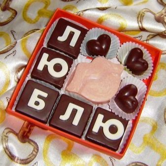 - Figured chocolate with a surprise. A box or a figure made of chocolate, inside of which there is a present (ring, car keys) is a gift that will be remembered for a long time.