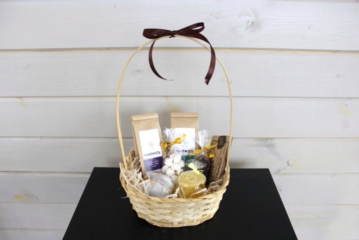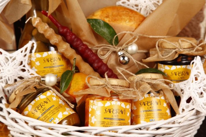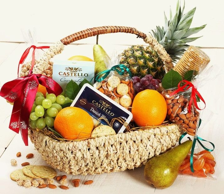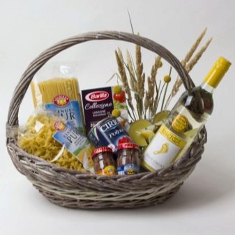 An important point is the design of the basket. You can, of course, just neatly put the products in a wicker basket and present, but the decorated one looks much more attractive.