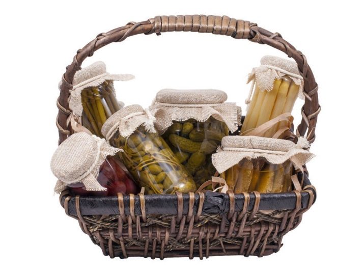 - You can even make an interesting basket from your own blanks by placing jars of mushrooms, cucumbers, tomatoes, canned salads, and vegetable caviar there. All this is very tasty and extremely useful.