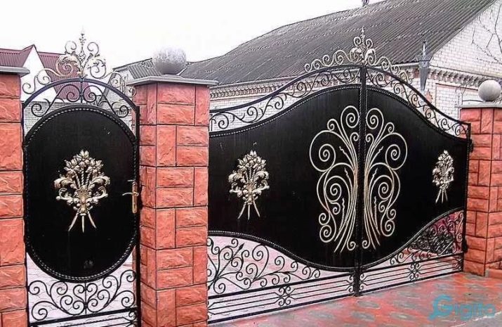 - Wrought iron elements on the fence and entrance gate. Metal jewelry will add refinement and expressiveness to the exterior.