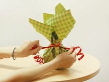 At the same time, the cup is a gift with a non-standard shape, and quite fragile, so packing it is not so simple. Usually, for this purpose, they use either transparent film or wrapping paper - they are spread out, a gift is placed in the middle, and then all the ends are simply gathered over a mug and tied with a ribbon with a bow.