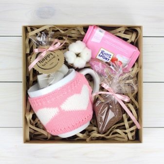 If one cup is not enough, you can give a whole set - for example, it can include an enameled mug, which should be filled with sweets, as well as a teaspoon and a package of good tasty tea.