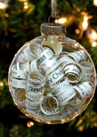 An unusual Christmas ball can be presented as an original gift for the New Year holidays. Today it is easy to find a transparent ball, which is made of plastic. Anything can be put inside such a ball. For example, these are chocolate dragees in bright glaze, nuts in sugar or notes with warm wishes.