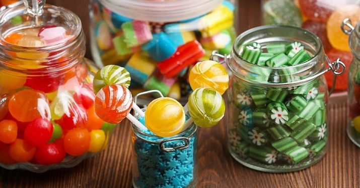 You can fill such a jar with candies, marshmallows, marshmallows, chocolate dragees or small cookies.