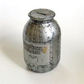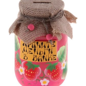 The jar can be taken in either glass or plastic, but transparent and preferably with a screw cap. Glue the jar itself with various decorative elements, be sure to decorate the lid. In the latter, make a hole sufficient for the free passage of money.